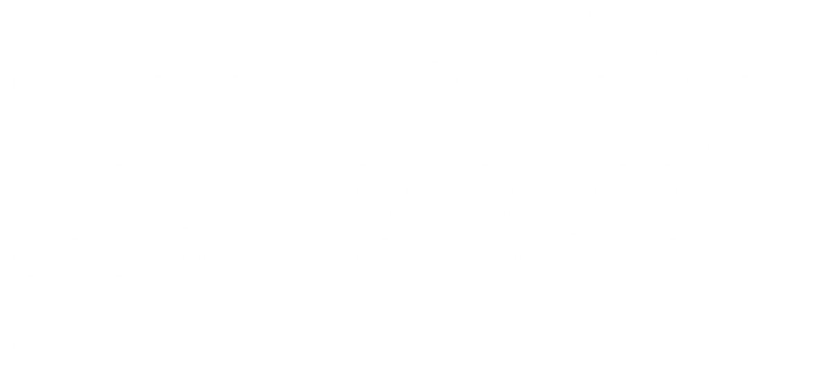 The First Responder Campus will be a community space for the State of Hawaii and City & County of Honolulu for joint training and operations. Nearly 20 agencies are seeking opportunities to use the future FRTC for multi-level coordination for the community benefit. This video portrays three agency insights of why an updated facility is needed to better serve the public.